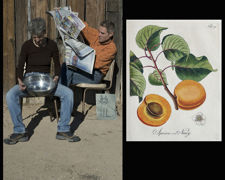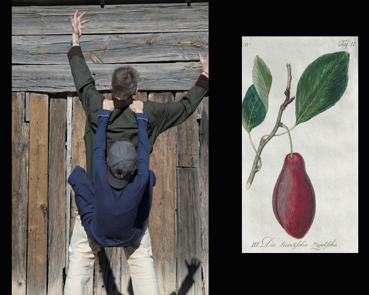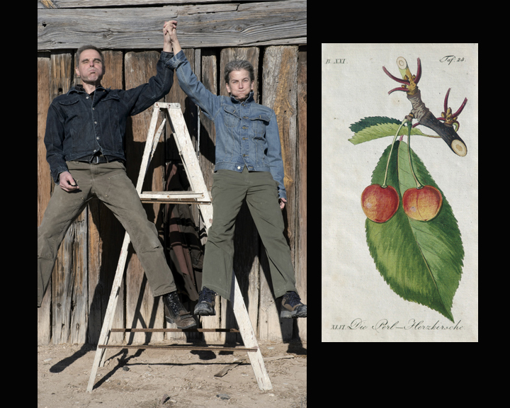 In HERZKIRSI nehmen Hurter-Urech die Gestalt von allerlei Früchten an. Die Vorlagen sind Zeichnungen aus alten „Kreüterbüchern“ *. Die Kulissen bilden nicht fruchtbare Gärten und Felder, sondern die ausgetrocknete Landschaft des Südwestens der USA.