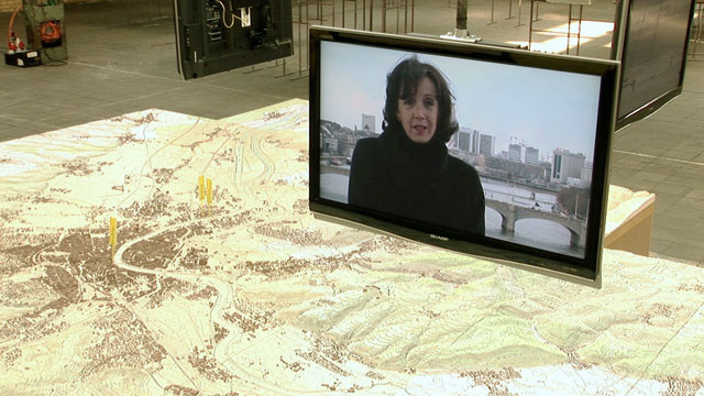 Die drei 11-minütigen Filme wurden so synchron geloopt, dass sich die Statements der Politiker auf den 3 Monitoren abwechselten.