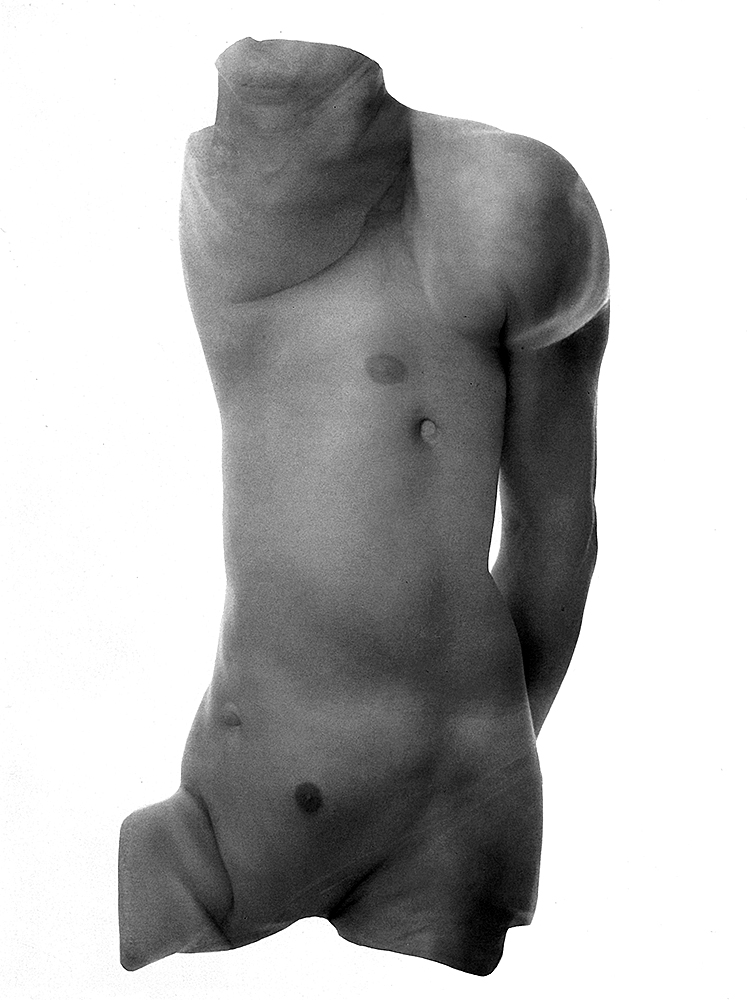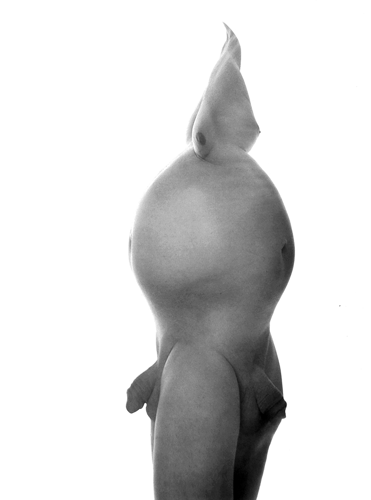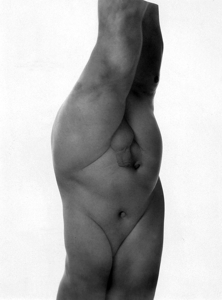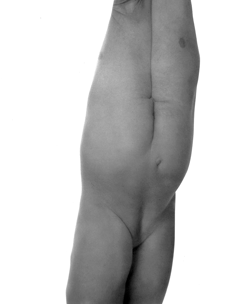 Vor weissem Hintergrund verwandelt sich sein Körper durch den fotografischen Prozess in eine formale Erscheinung, in immer neuen Modellierungen. Was Lüdin am eigenen Körper vorexerziert, ist Realität geworden: der Körper, ein Tummelfeld für uneingeschränkte Manipulation: Kopflos winden sich die Körper im leeren Raum und stellen die Frage: Was könnte ich noch werden?