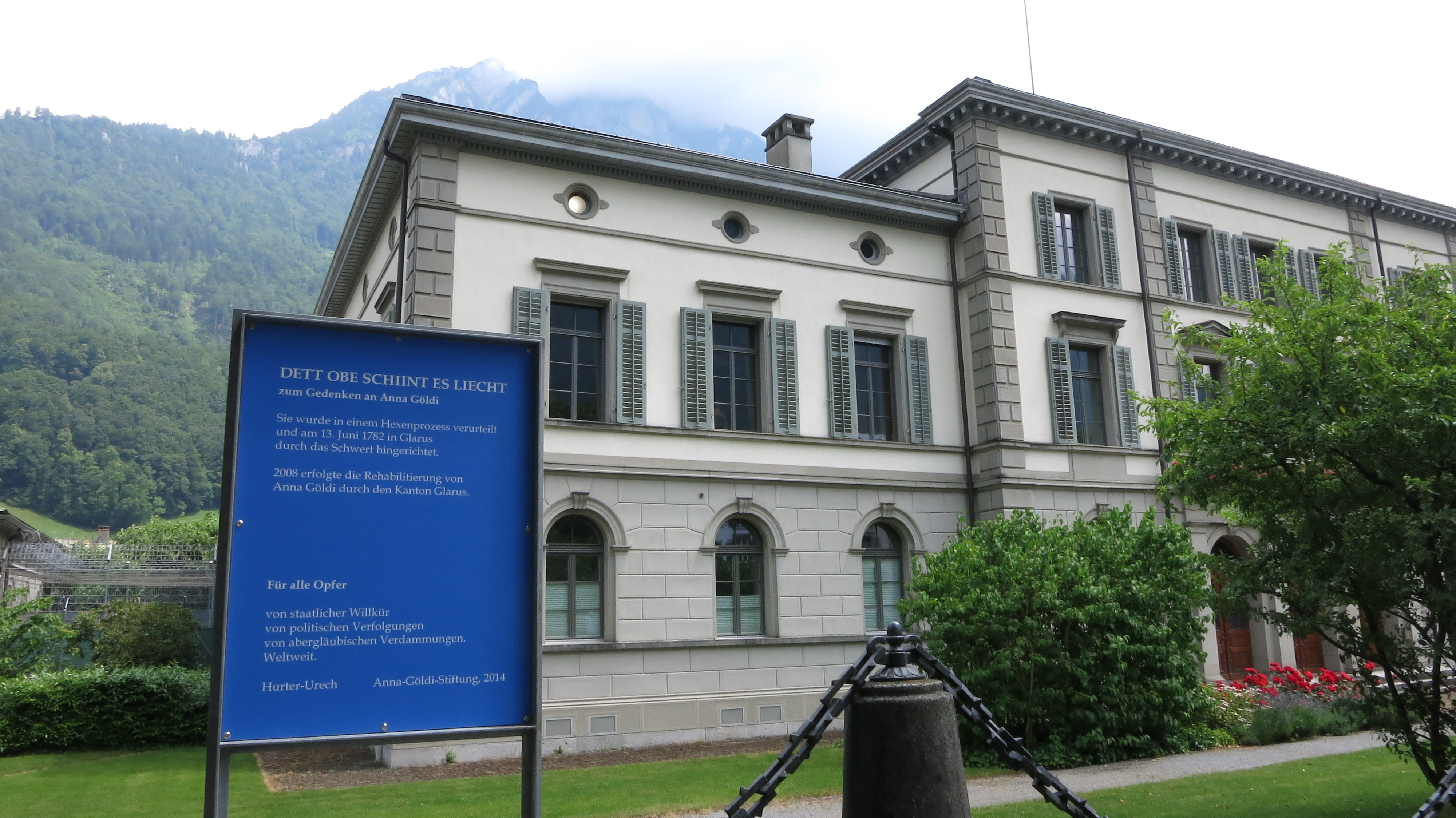 Anna Göldi wurde im letzten Hexenprozess von Europa am 13. Juni 1782 durch das Schwert hingerichtet. 2008 erfolgte die Rehabilitierung von Anna Göldi durch den Kanton Glarus.