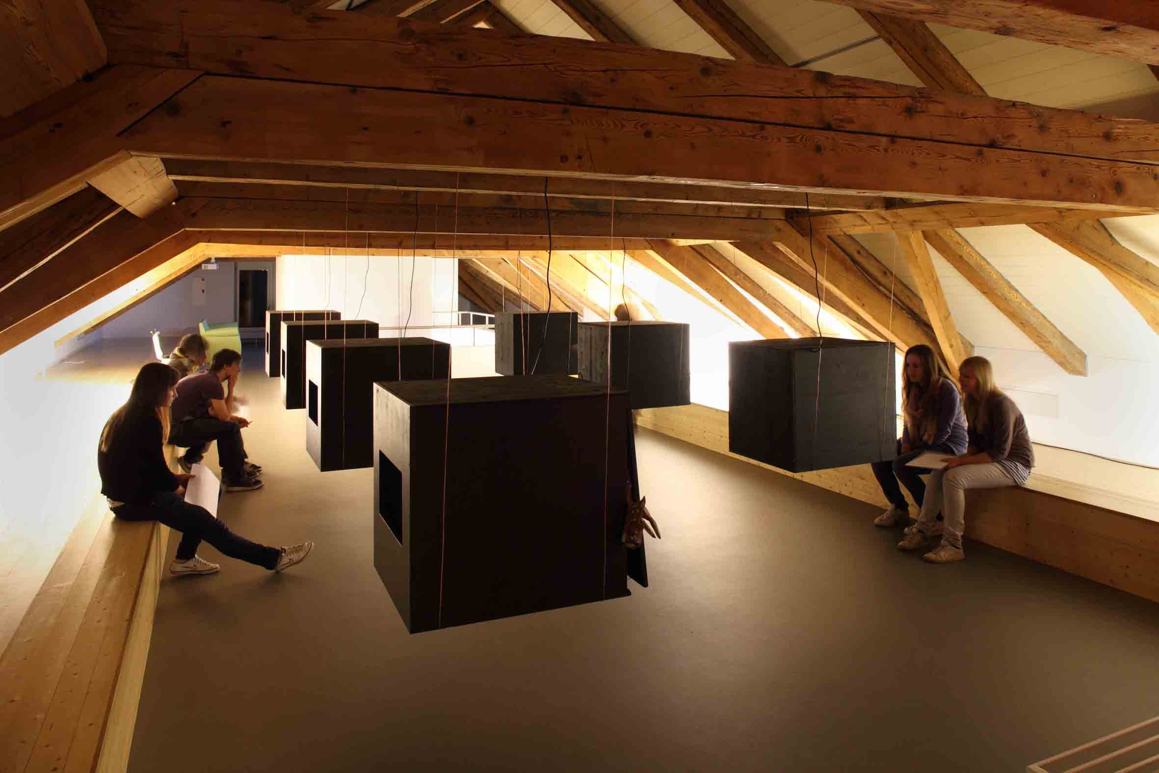 Installation mit 7 audiovisuellen Magic Black Boxen