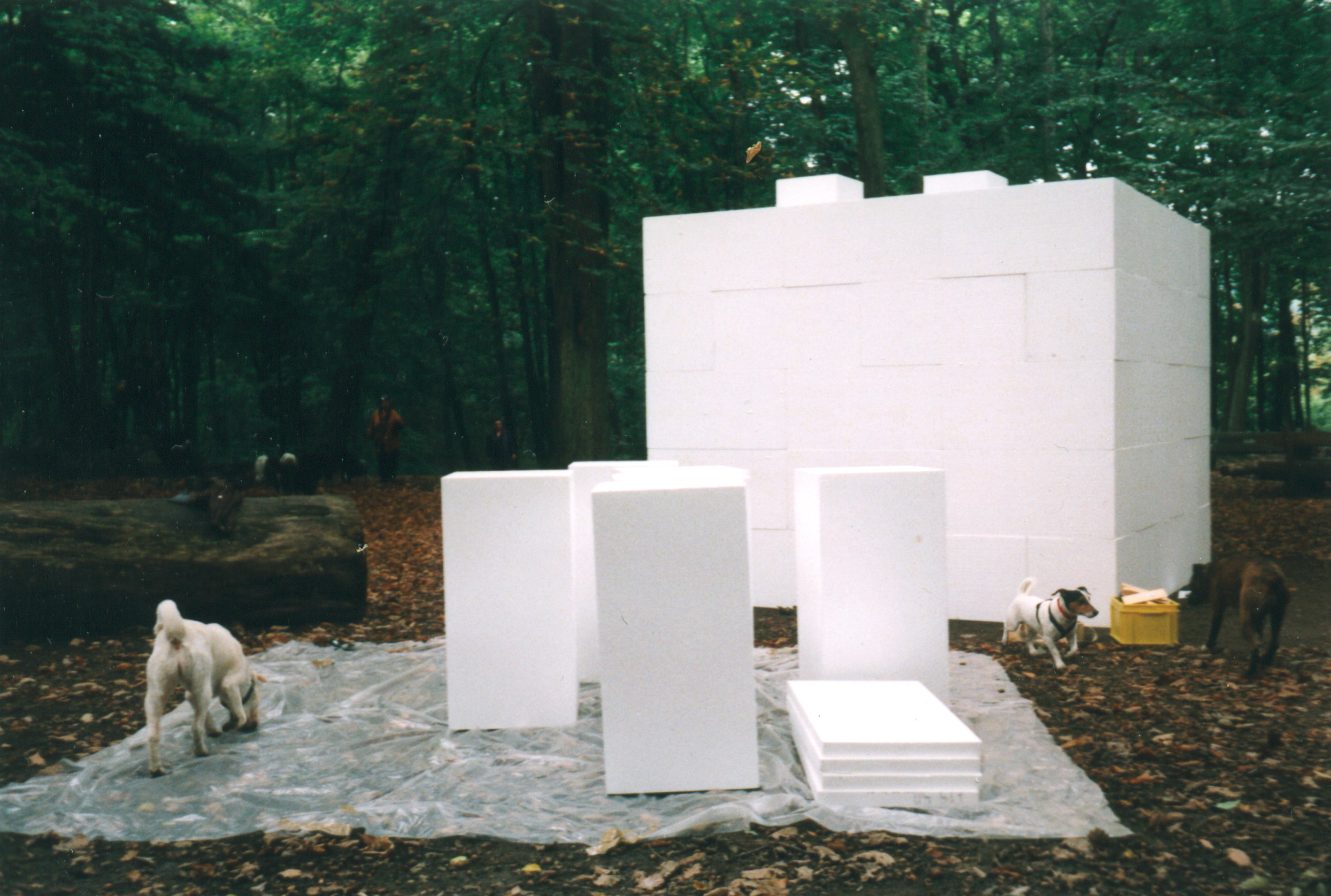 Ein Hohlkörper (Kubus) aus 60 Styroblöcken von 50 x 50 x 100 cm.