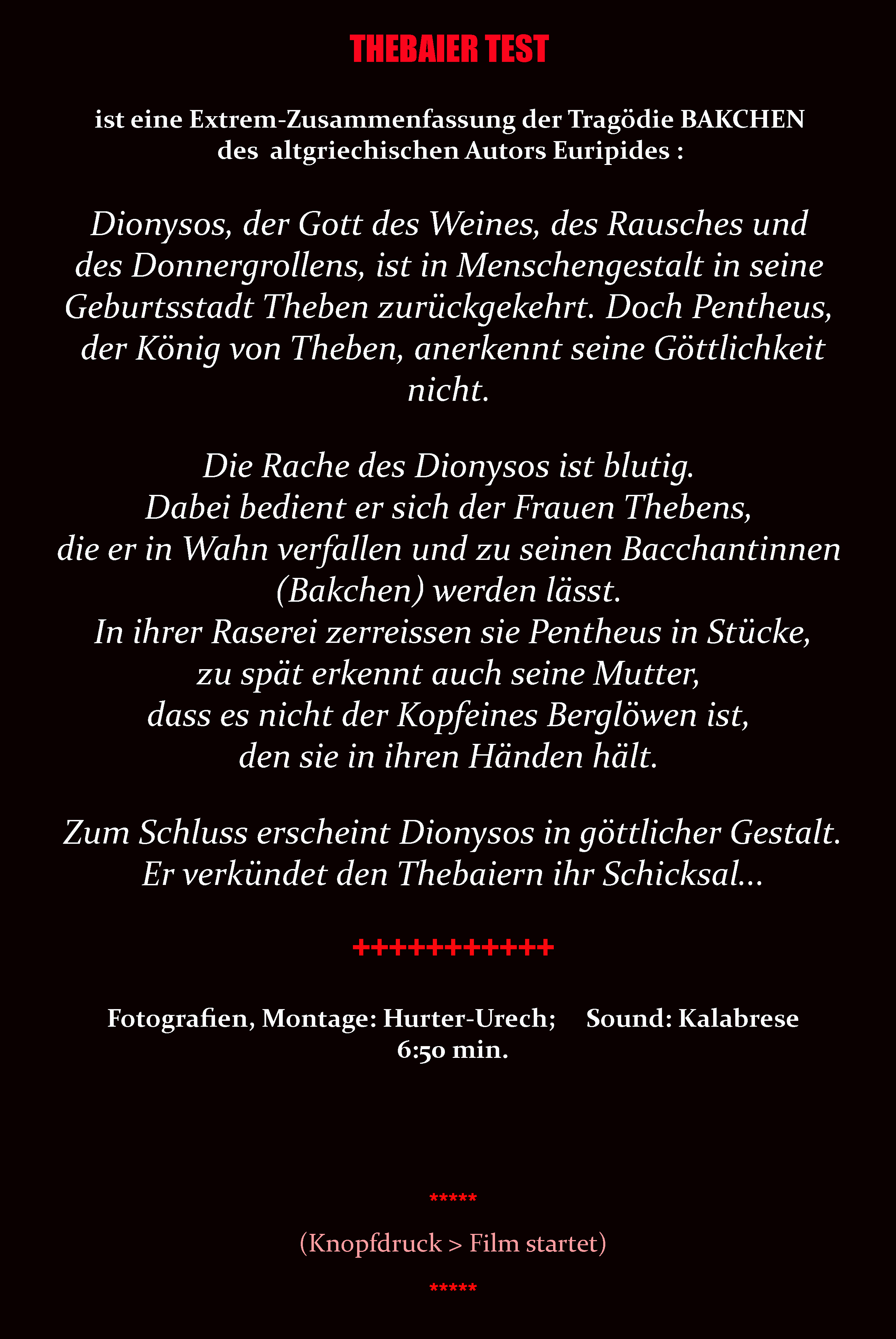 ist eine Extrem-Zusammenfassung der Tragödie BAKCHEN des altgriechischen Autors Euripides.
