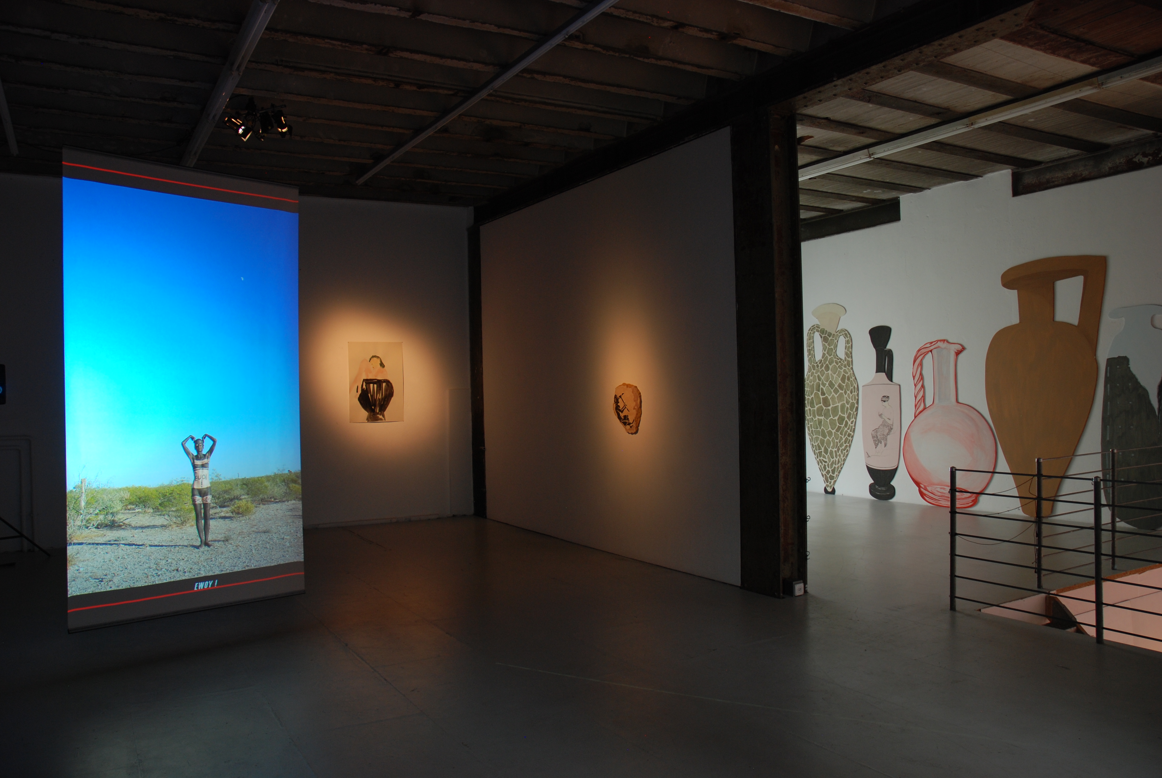 Hurter-Urech stehen, erstarrt zu Amphoren, in einer archaischen Landschaft. Auf diesen Amphoren spielt sich die Tragödie ab; jede Szene gerinnt jeweils zu einem einzigen auf die Amphorenbäuche gemalten Wort.
